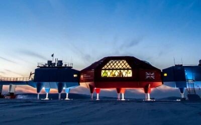 The Antarctic Ice Sheet covers an area of almost 14 million km² and contains 30 million km³ of ice. Around 60% of the world’s total fresh water (90% of the world’s surface fresh water) is held in the ice sheet, equivalent to a 70m rise in global sea level. In East Antarctica the ice sheet rests on a major land mass, but in West Antarctica the bed is, in places, more than 2,500m below sea level.